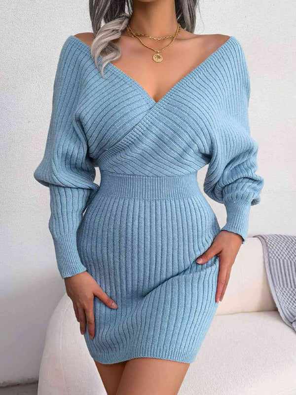 Maternity Sweater Dress-V-Neck Long Sleeve Mini Sweater Dress