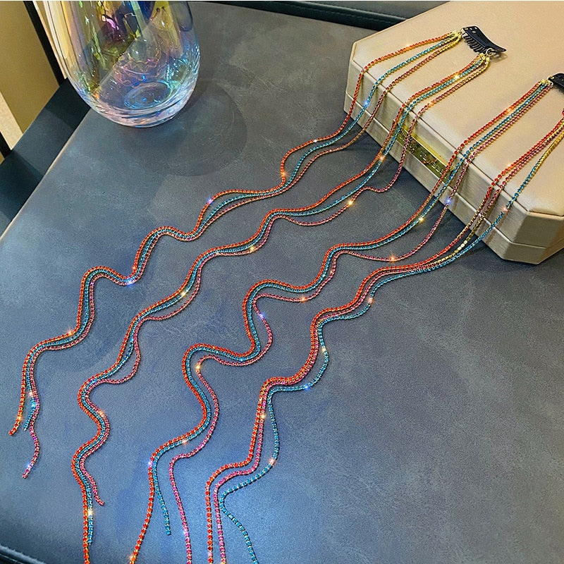 Bling Rhinestones Head Chain Hairpin Hair Clip Headdress Jewelry Luxury Long Tassel Bride Ornaments Girls Hair Accessories
