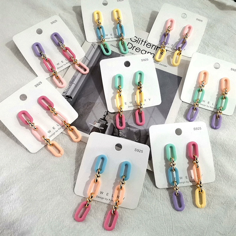 2022 Candy Color Acrylic Earrings Summer Trendy Women Earrings Colored Simple Claw Earring Girls Macaron Color Cute Chain Earring
