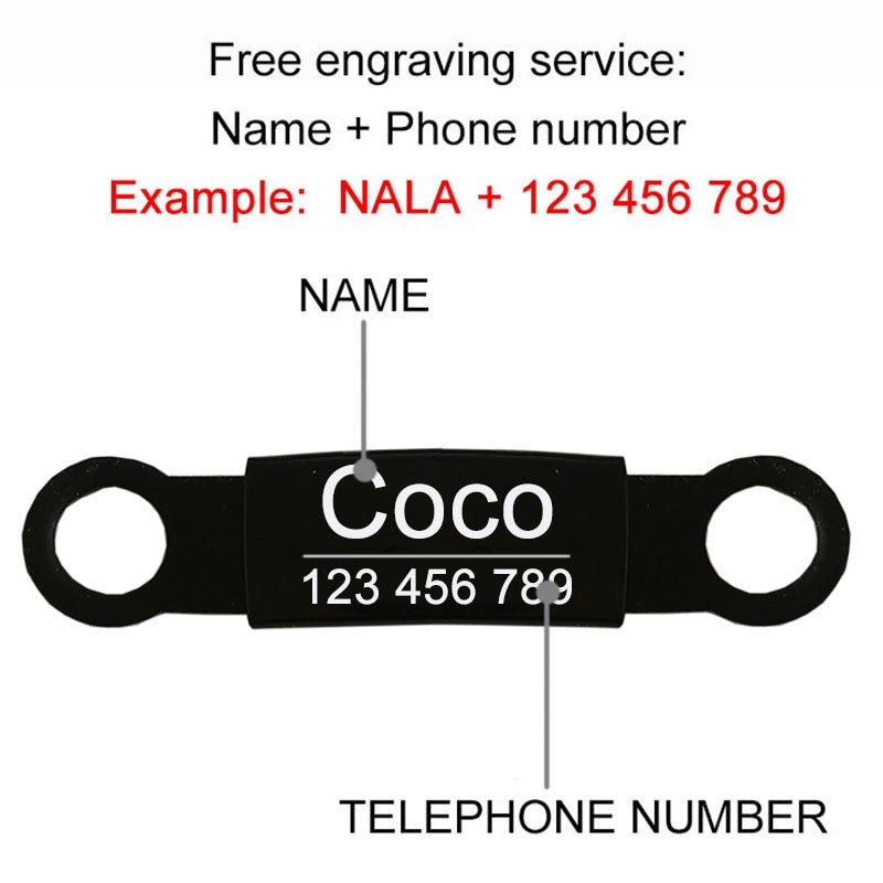 A must-have for pet owners, this reflective safety collar is made of nylon, adjustable, and personalized with a custom ID engraving. High-visibility reflective materials ensure your pet is safely seen even in low-light conditions. Protect your furry friend with the peace of mind.