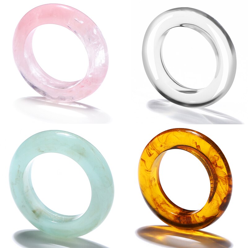 17KM Korean Colorful Transparent Resin Acrylic Rings Set for Women Trendy Geometric Square Round Ring Wedding Jewelry