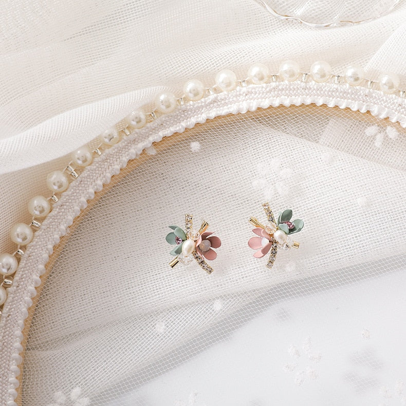 2020 New Korean Trendy Handmade Colorful Sweet Flowers Stud Earrings For Women Shiny Jewelry Fashion Oorbellen Gifts