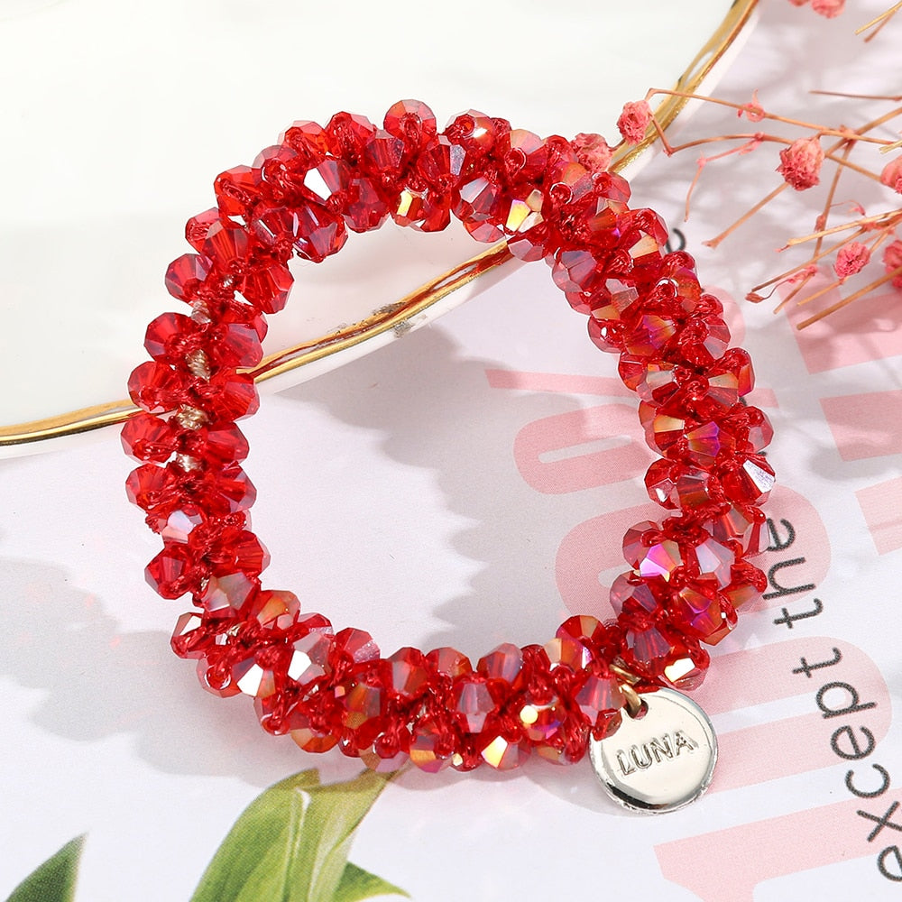 Crystal Beads Hair Rope is an ideal ponytail accessory for women, offering a simple yet stylish solution to secure your hair in place. This elastic hair scrunchy features fun and glossy crystal beads, crafted with a high-quality rubber hairband for all-day comfort. Easily adjustable and designed to blend seamlessly with any hairstyle, this beaded hairband is the perfect fashion-forward hair accessory.