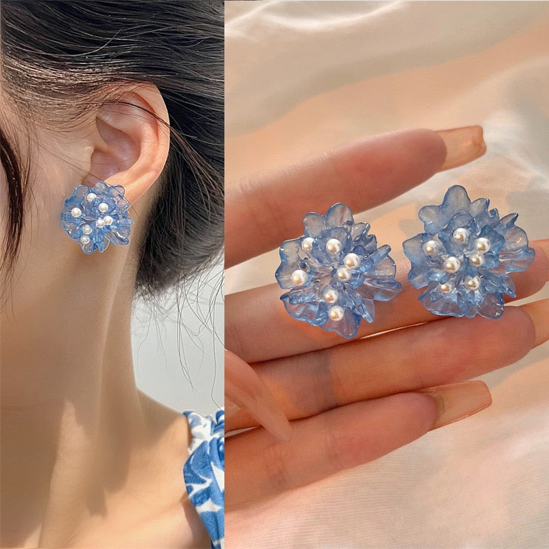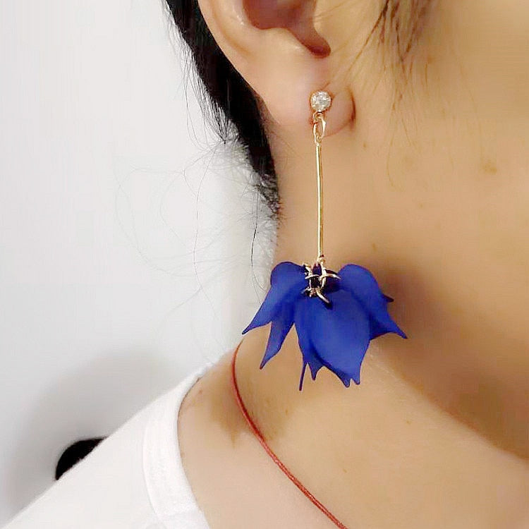 Exknl Multicolored Fashion Resin Flower Long Drop Earrings 2022 Designs Bohemia Handmade Petal Dangle Earrings For Women Gift