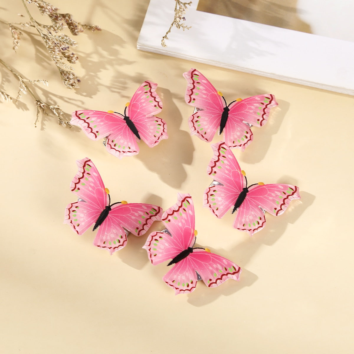 5pcs Girls Transparent Butterfly Pink Hairpin Children Fashion Heart-Shape Hair Clips Women Barrettes Headband Hair Accessories