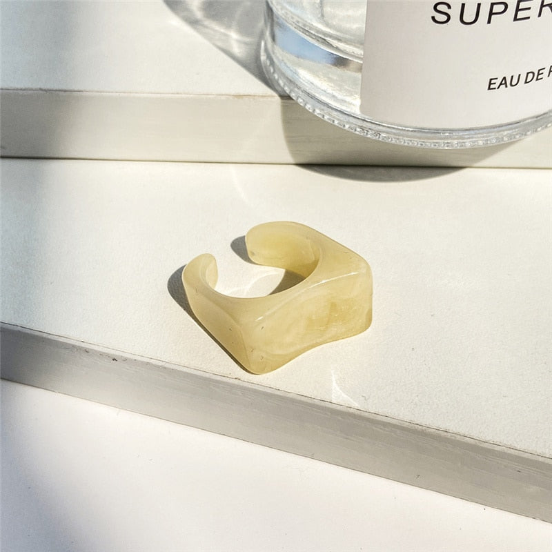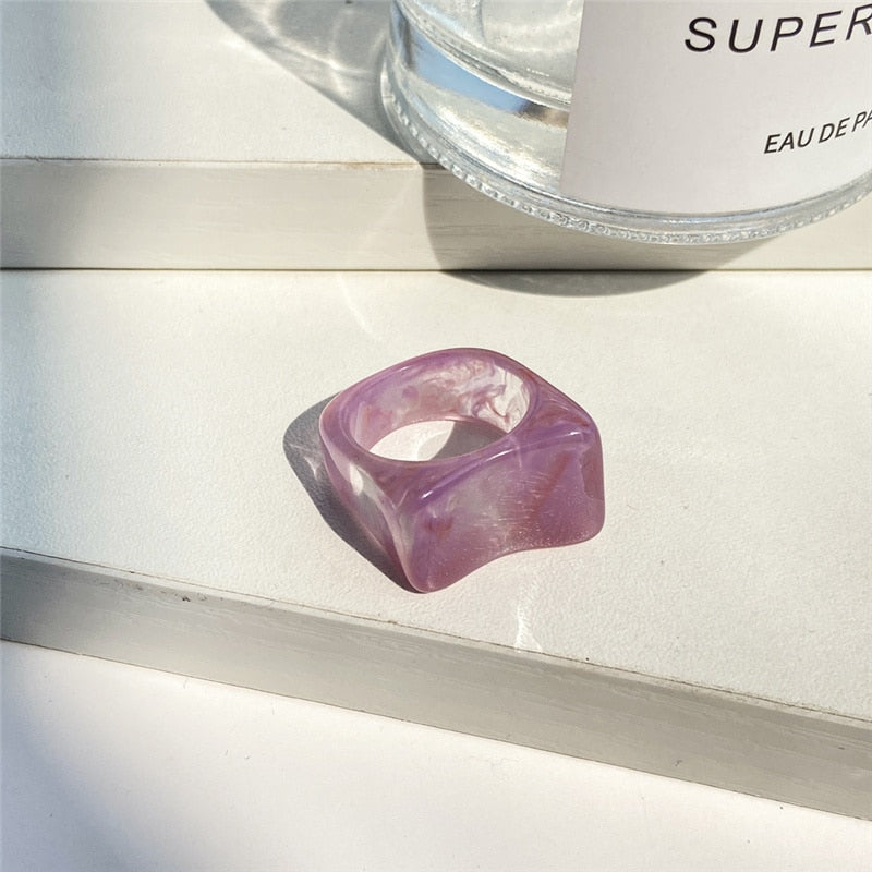 IF ME 6PCS/SET Simple Thick Colorful Transparent Acrylic Resin Pattern Geometric Irregular Rings for Women Vintage Jewelry New