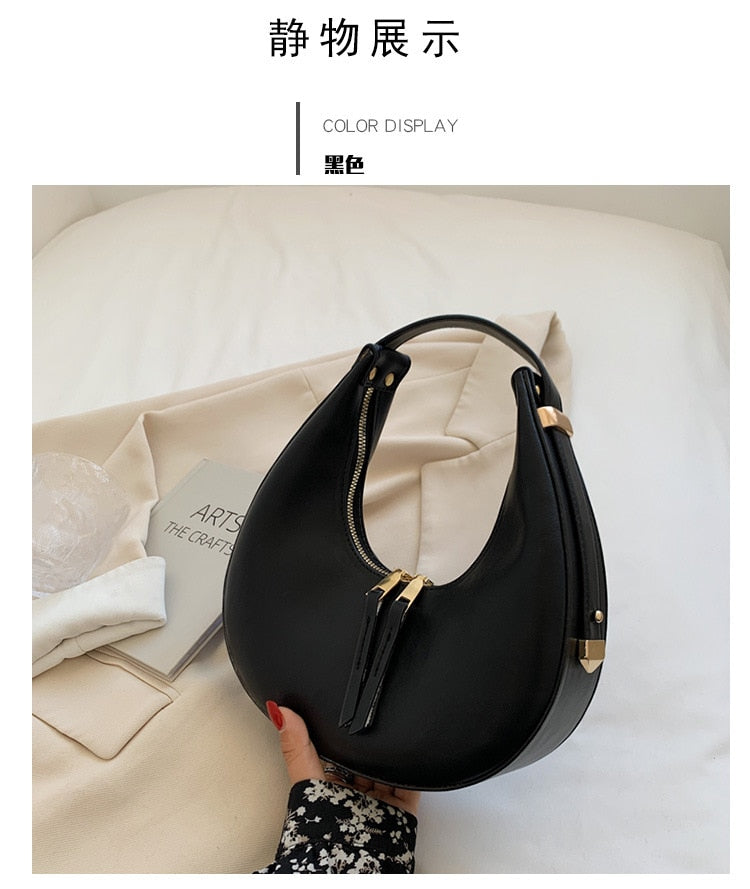 Description: PU Leather Women Luxury Designer Handbag Purses 2022 Fashion Wallet Double Zipper Half Moon Crescent Hobos Shoulder Bags