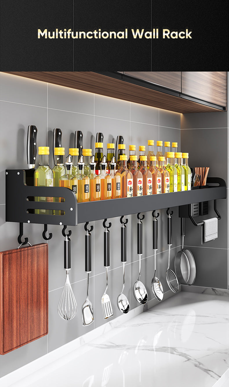 Β Multipurpose Kitchen Rack Wall-mounted Aluminum Kitchen Organizer Spices Rack Kitchen Utensils Organizer offers four sizes for installation: 50cm, 60cm, 70cm, and 80cm. Constructed from space aluminum, this storage shelf is simple to mount with a hole punch.