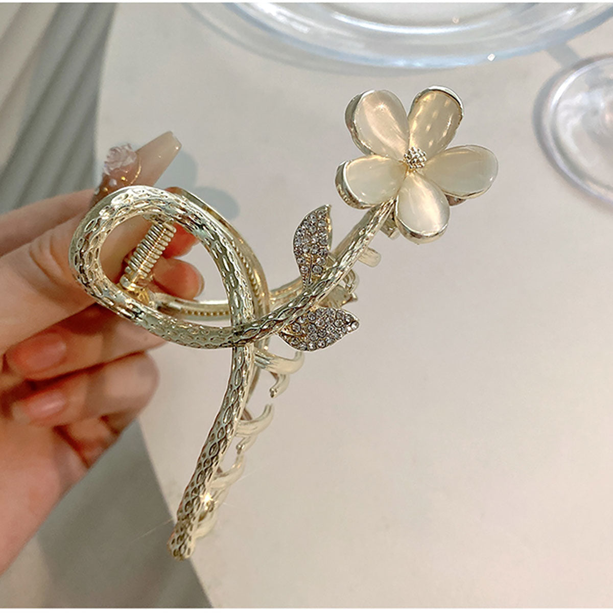 A beautiful and elegant addition to any woman's wardrobe, the New Women Metal Hair Claw is a hair accessory that features gold flowers on a comfortable and secure metal clip. Its strong clips securely hold a variety of hairstyles while also adding a touch of classic elegance. Ideal for a variety of occasions, this hair claw is perfect for creating a unique and stylish updo.