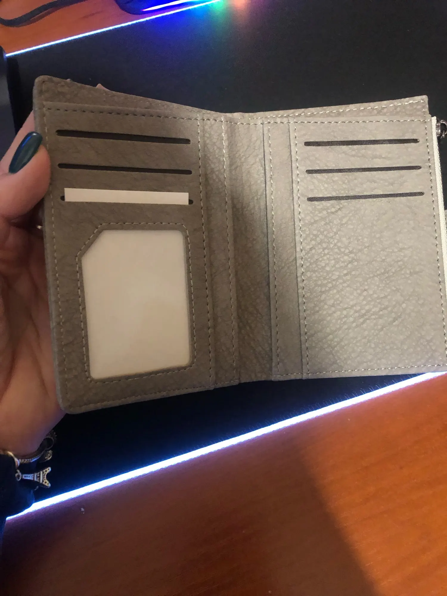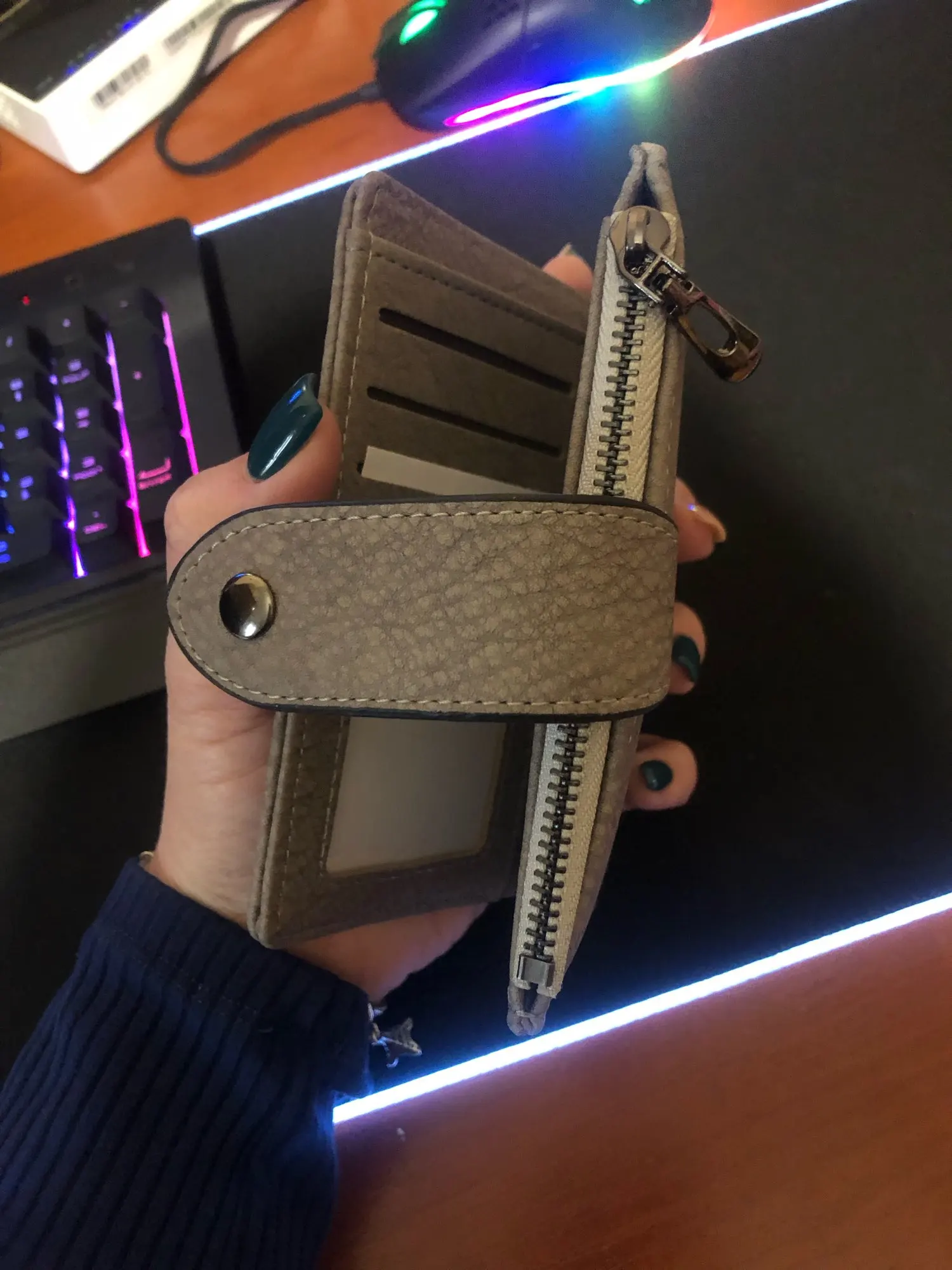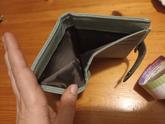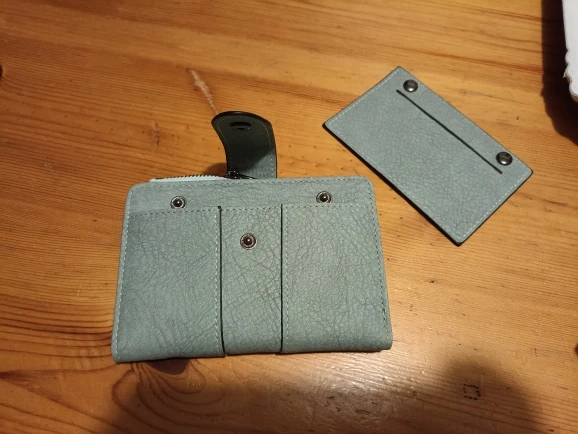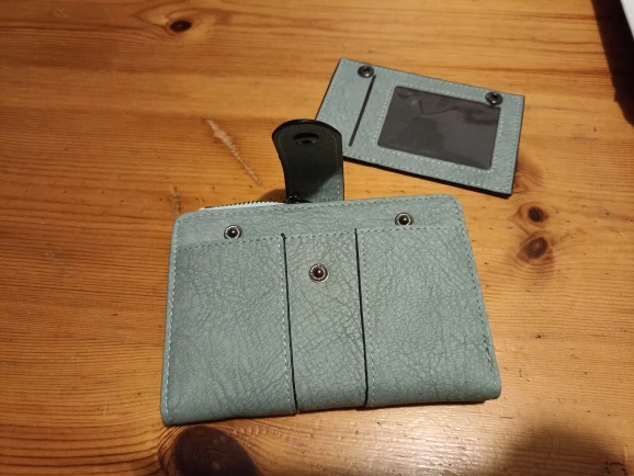 Excellent wallet. It is quite practical and beautiful, the color is a little darker than in the images but that only makes it look more beautiful, it can fit my cards, coins and other things that I need in my day to day, it does not take up much space and the fabric is of excellent quality.