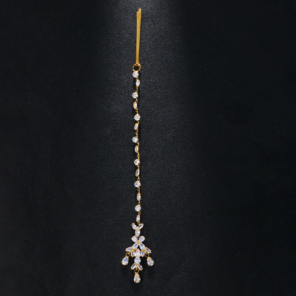 The Boho Bridal Wedding Head Chain offers a delicate and glamorous look for special occasions. An exquisite combination of Cubic Zirconia and leaf designs adds elegance and sparkle to any hairstyle. Perfect for weddings, this statement headpiece is crafted with quality materials to ensure you look and feel beautiful.